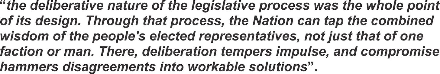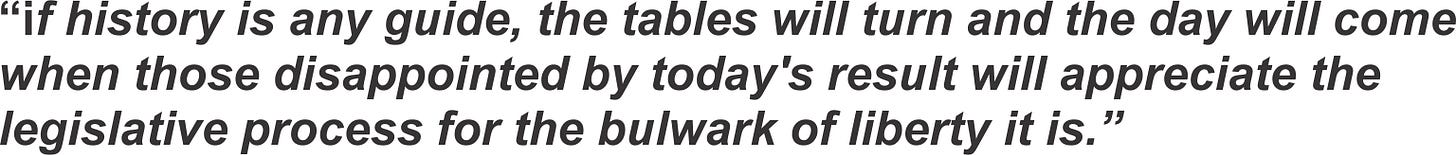 Finally, Gorsuch issues a strong warning to our illustrious representative body:
