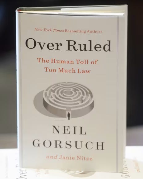 Gorsuch also authored a thoughtful book, Over Ruled, a slim volume detailing the ridiculous number of American laws that appear designed less to promote order than to manufacture misery. In it, he lists some of the most outdated and ill-considered regulations — the sort that can fine you, prosecute you, or even send you to prison, often for reasons no one can quite explain anymore.